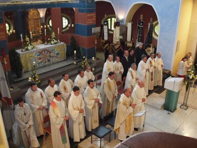 Dekan Kilian Kemmer begrüßt Thomas Ringer als Pfarradministrator und Pfarrer von St. Stephanus und der Pfarreiengemeinschaft Adelsdorf-Aisch
