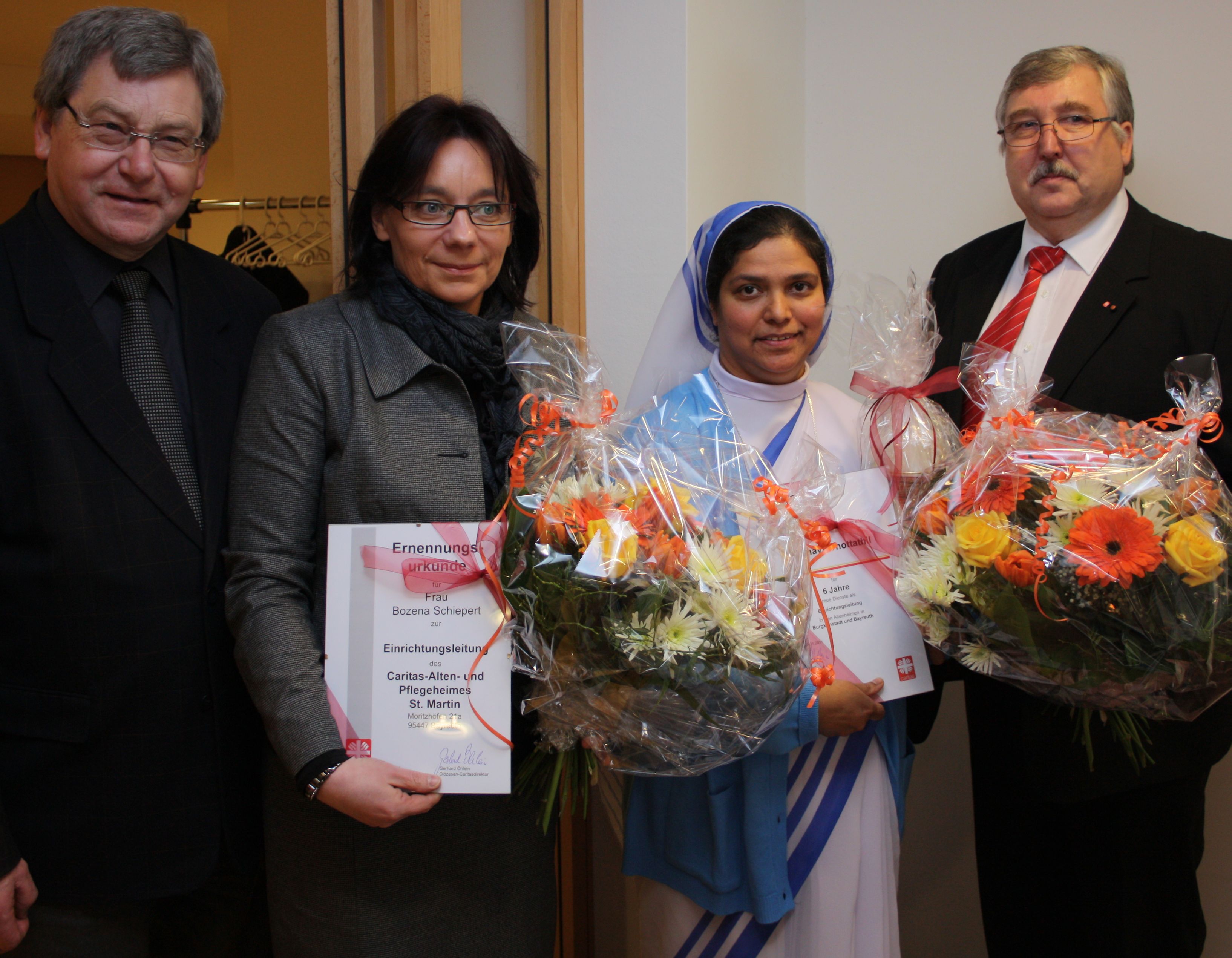 Ein verlässlicher und für das Wohl der Hausbewohner engagierter Heimträger zu sein, bescheinigte Bayreuths 3. Bürgermeisterin Dr. Beate Kuhn dem Caritasverband für die Erzdiözese Bamberg. Insbesondere nannte sie seine „sorgfältige Auswahl der Leitungskräfte“. Der Anlass für das Lob – der Wechsel in der Leitung des Caritas-Alten- und Pflegeheims St. Martin – bestätigte die Einschätzung.